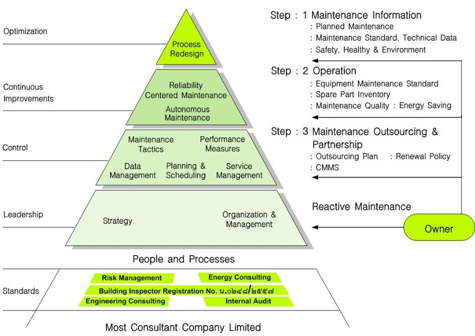 - ที่ปรึกษาด้านการจัดการงานดูแลและบำรุงรักษา (Operation & Maintenance)